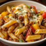 Philly Cheesesteak Pasta is a delightful, comforting dish that combines the classic flavors of the iconic cheesesteak with the heartiness of pasta.